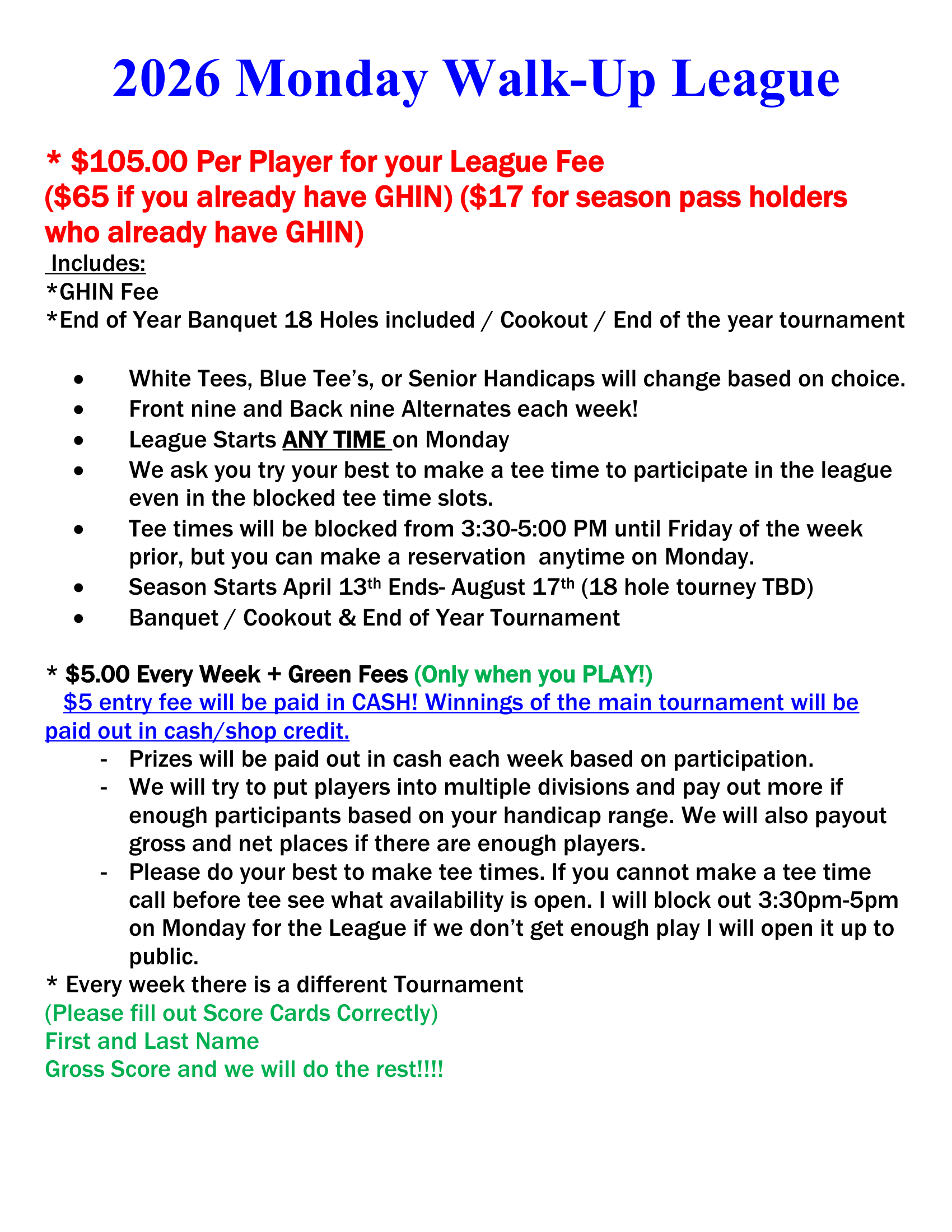 Monday Walk Up League Monday Walk-Up League The Original Format IS BACK Monday Walk up League Application Click Here