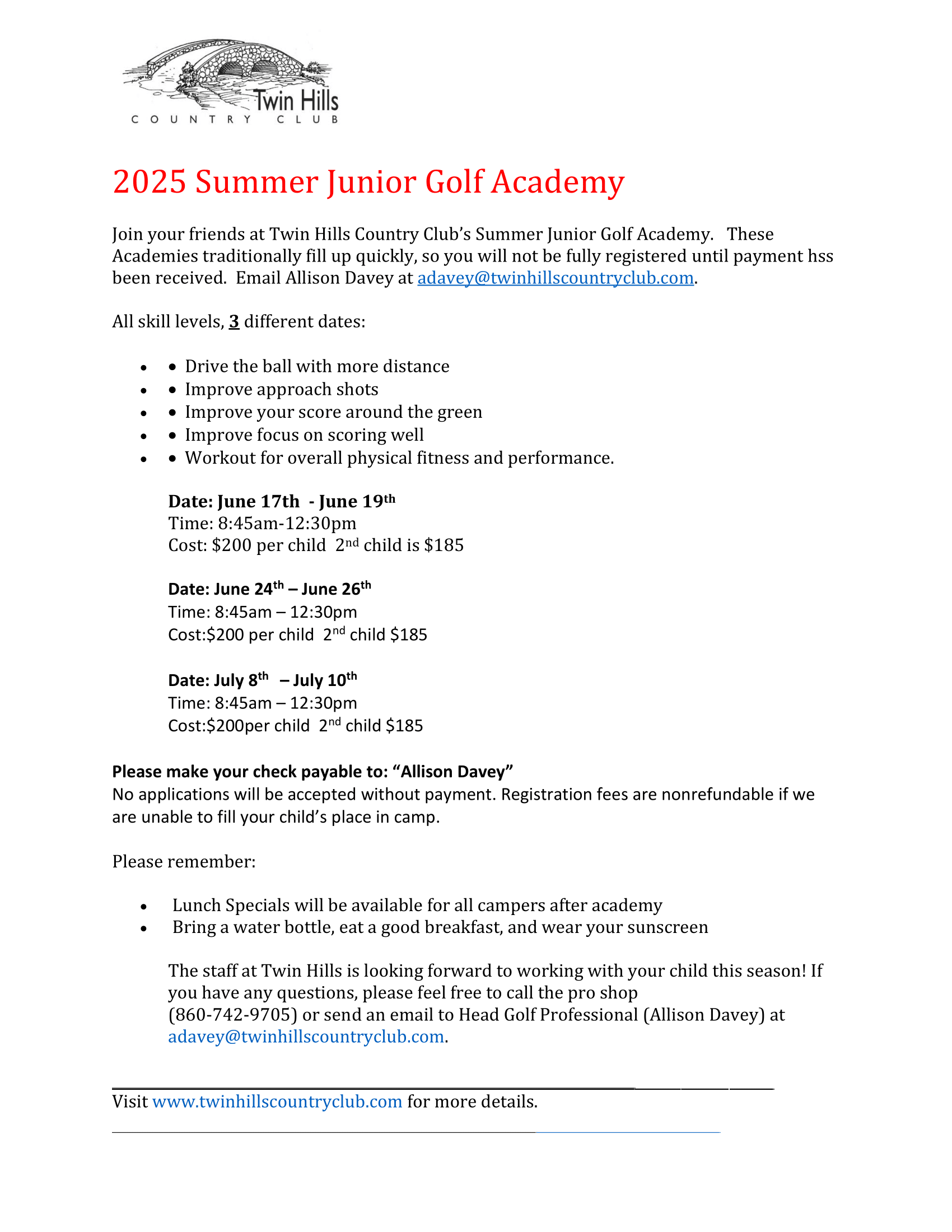 Please call Twin Hills Country Club to sign up
